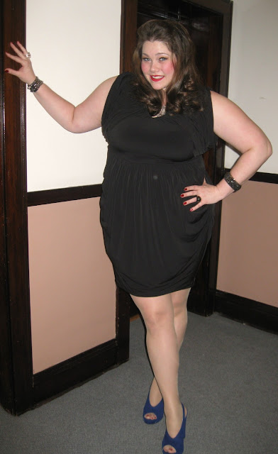Outfit Breakdown: Sasha Dress in black– Shavonne Dorsey; Jewelry — Forever 21 and Jewelmint and violette; Free Press platform suede heels in blue — TJ Maxx.