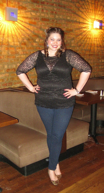 Loretta Lace Top: c/o Kiyonna, Leopard flats: violette, Feathered  brooch: gifted, Drop rhinestone earrings: gifted,  Sparkly bracelet: Art Effects, Ring: Forever 21.