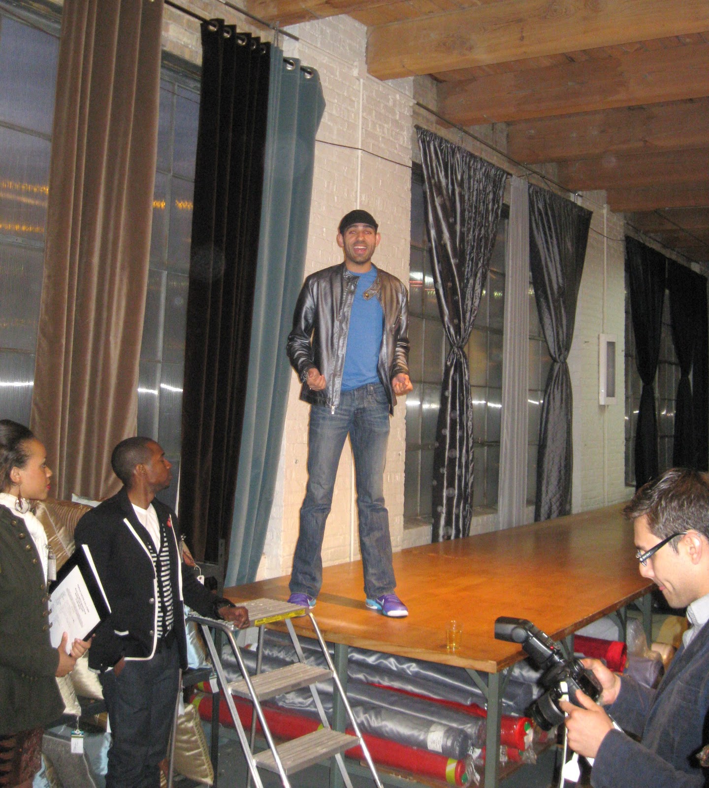 How adorable is Omar of GOCA Designs? He’s getting to know a stylist here from Australia and David, a talented student who is interning with Plus Fashion Week. 🙂 FUN!
