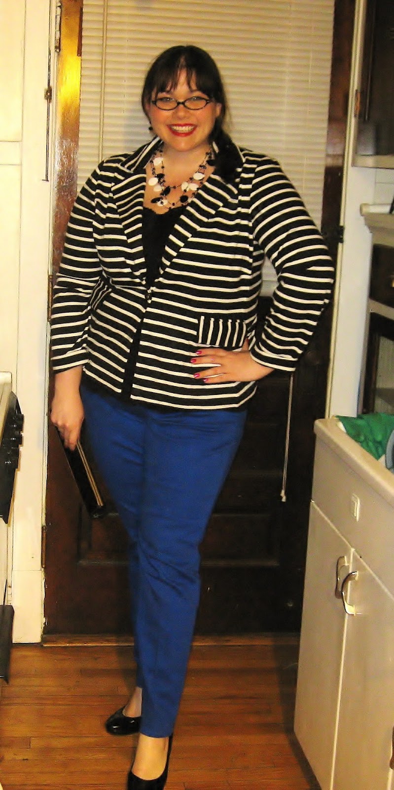 Cobalt Skinny Jeans: Kut from the cloth via Nordstrom Rack; Striped blazer: Forever 21; Black heels: Me Too