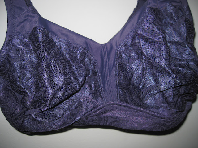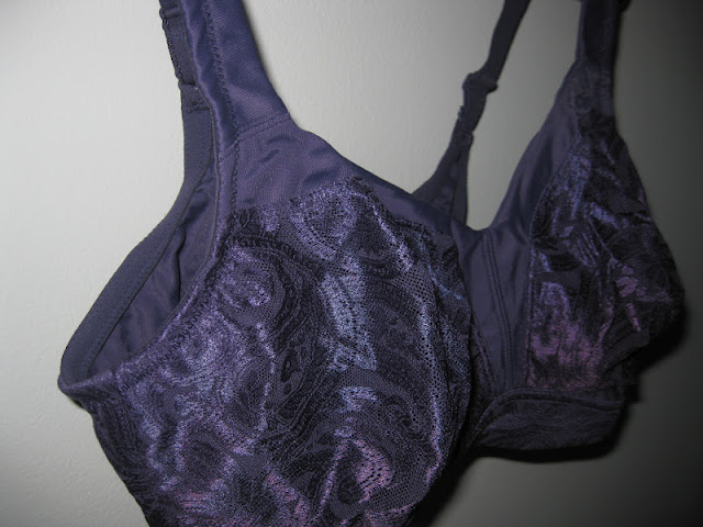 It comes in a pretty purple-y plum color and lace fabric in the cups.