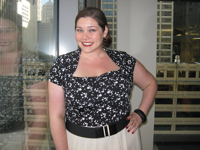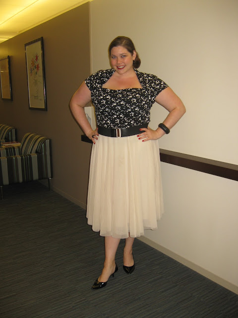 This dress is one of my the purchases I made at the Cupcakes, Curves, and Cleavage event at vive la femme. It is pretty low cut, so if you aren’t comfortable with your girls, you might want to wear a cami or slip underneath. Also, be very very careful with what you let rub against the fabric. I always carry my purse on the left, and when I took off my dress, I noticed some pilling on that side! So if you get this dress, be careful ladies!