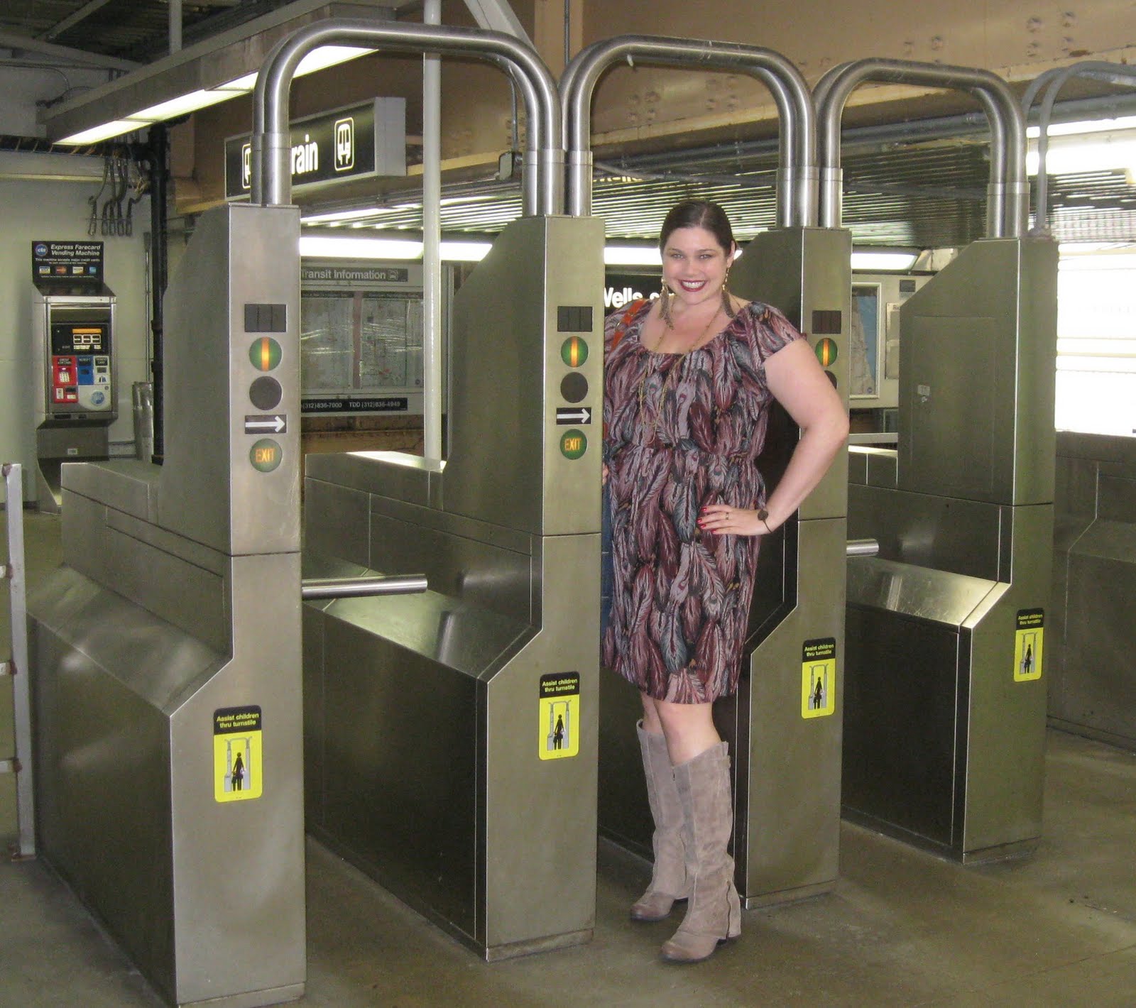 Next, I decided to stop into Macy’s on State Street, even though they didn’t have anything directly relevant to curvy girl fashion. BUT…I did get to see Kelly Osbourne, who was there promoting the new Material Girl Collection. She was charming and looked adorable…even though I wish she wasn’t so skinny. lol. In my unsolicited and biased opinion, she looked more natural when she was a bit more filled out.
