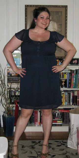 -Went light and summery with a navy sheer dress and leopard wedges.